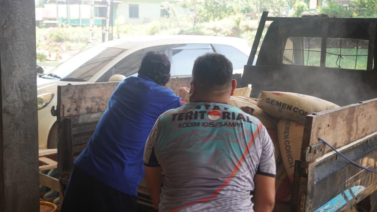 Dansatgas TMMD Reguler Ke-124 Kodim 1012/Btk Letkol Inf Langgeng Pujut Santoso, S.E., M.Han. mengatakan, “Mereka bahkan memanfaatkan karung bekas yang sudah tidak terpakai sebagai alat memindahkan pasir dan batu dengancara di pikul dan di gotong bersama dari tempat penumpukan material ke lokasisasaran”, jelasnya