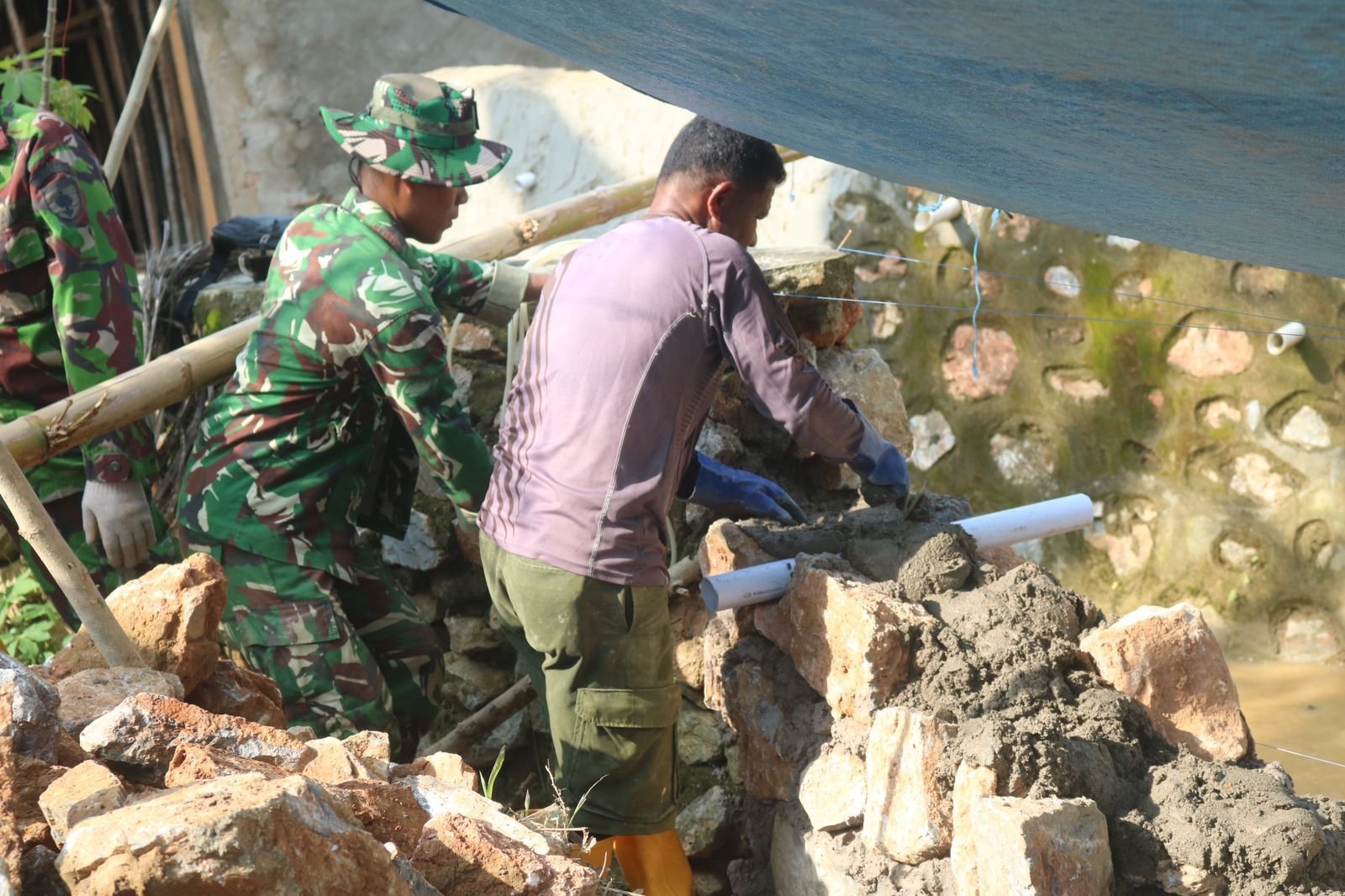 Melalui sinergi antara TNI dan masyarakat, pembangunan infrastruktur diharapkan dapat segera selesai sehingga memberikan dampak positif terhadap peningkatan akses dan kesejahteraan warga setempat.