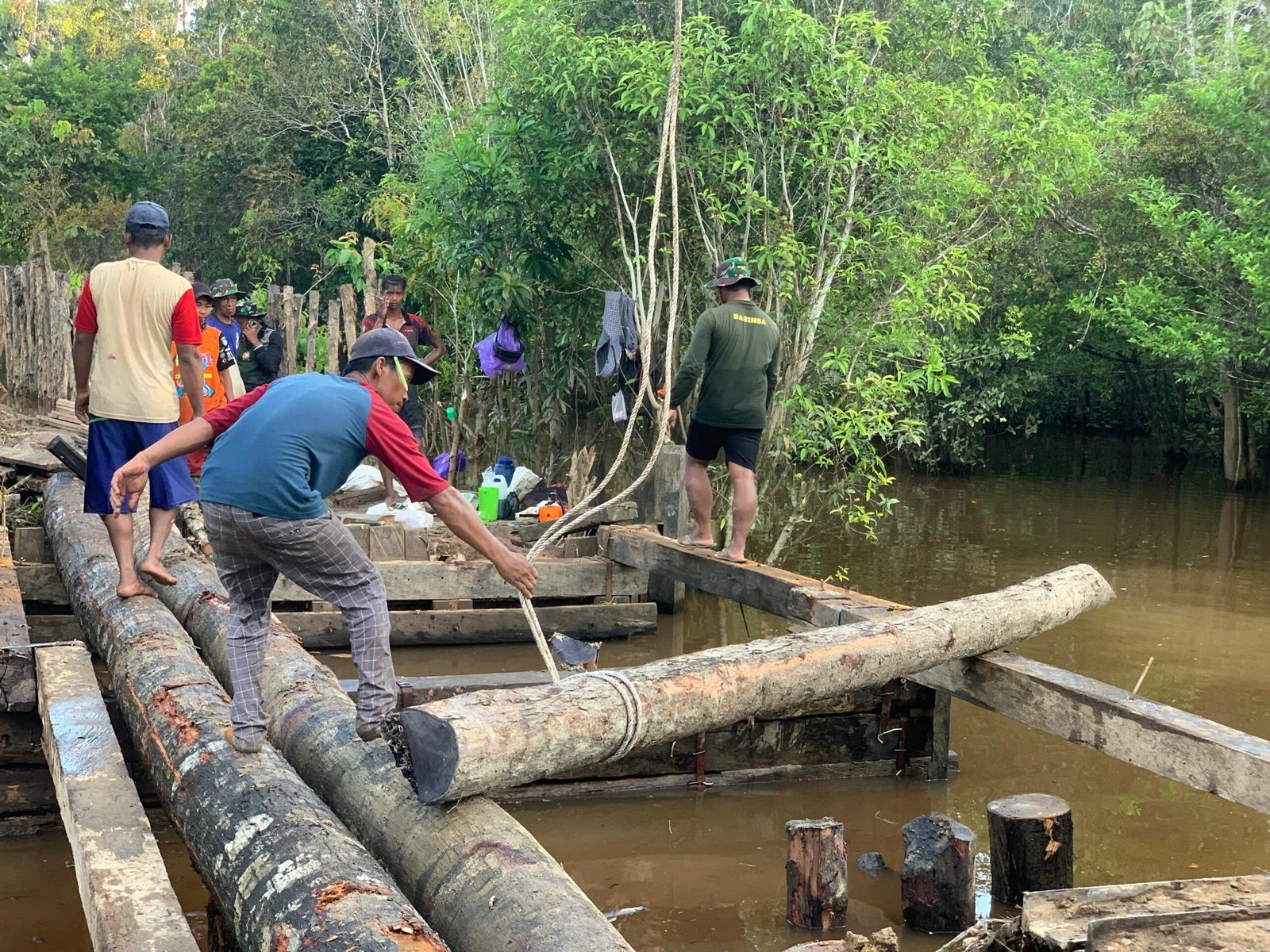 Kotawaringin Timur – Kebersamaan antara anggota Satgas TMMD Reguler ke-127 Kodim 1015/Sampit dan masyarakat kembali terlihat dalam kegiatan pengangkutan material semen untuk pembangunan MCK di Desa Tri Buana, Kecamatan Telaga Antang, Senin (02/03/2026).