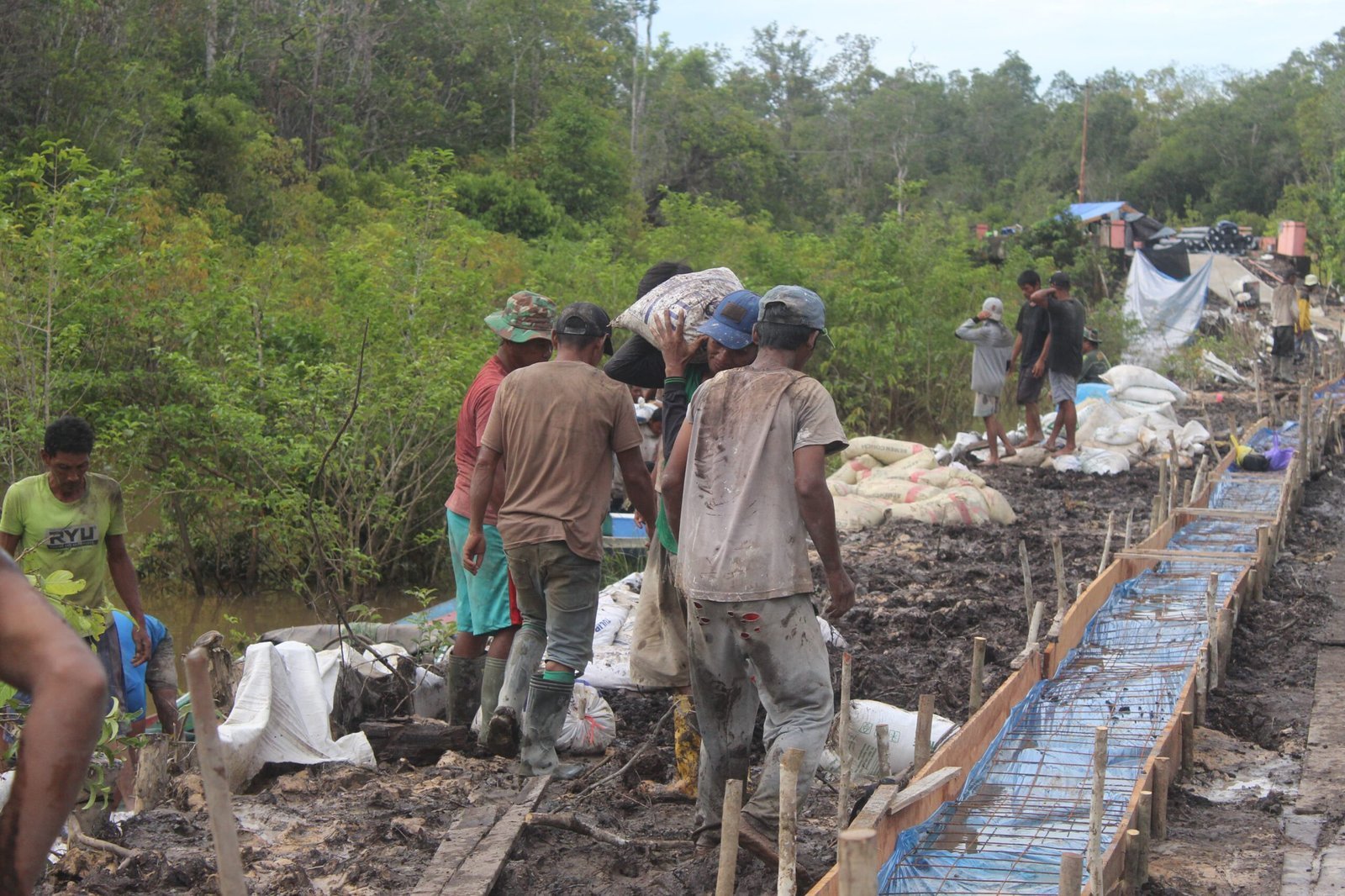 Kegiatan ini diawali dengan santai, di mana seluruh peserta terlebih dahulu menikmati minuman susu dan roti yang telah disiapkan oleh Satgas TMMD. Hidangan sederhana ini menjadi momen kebersamaan yang hangat antara anggota TNI dan masyarakat setempat.