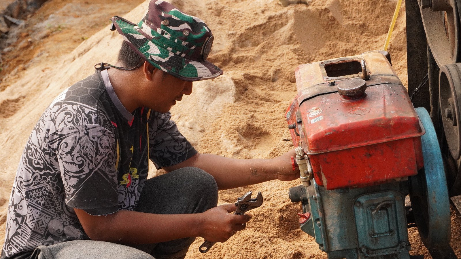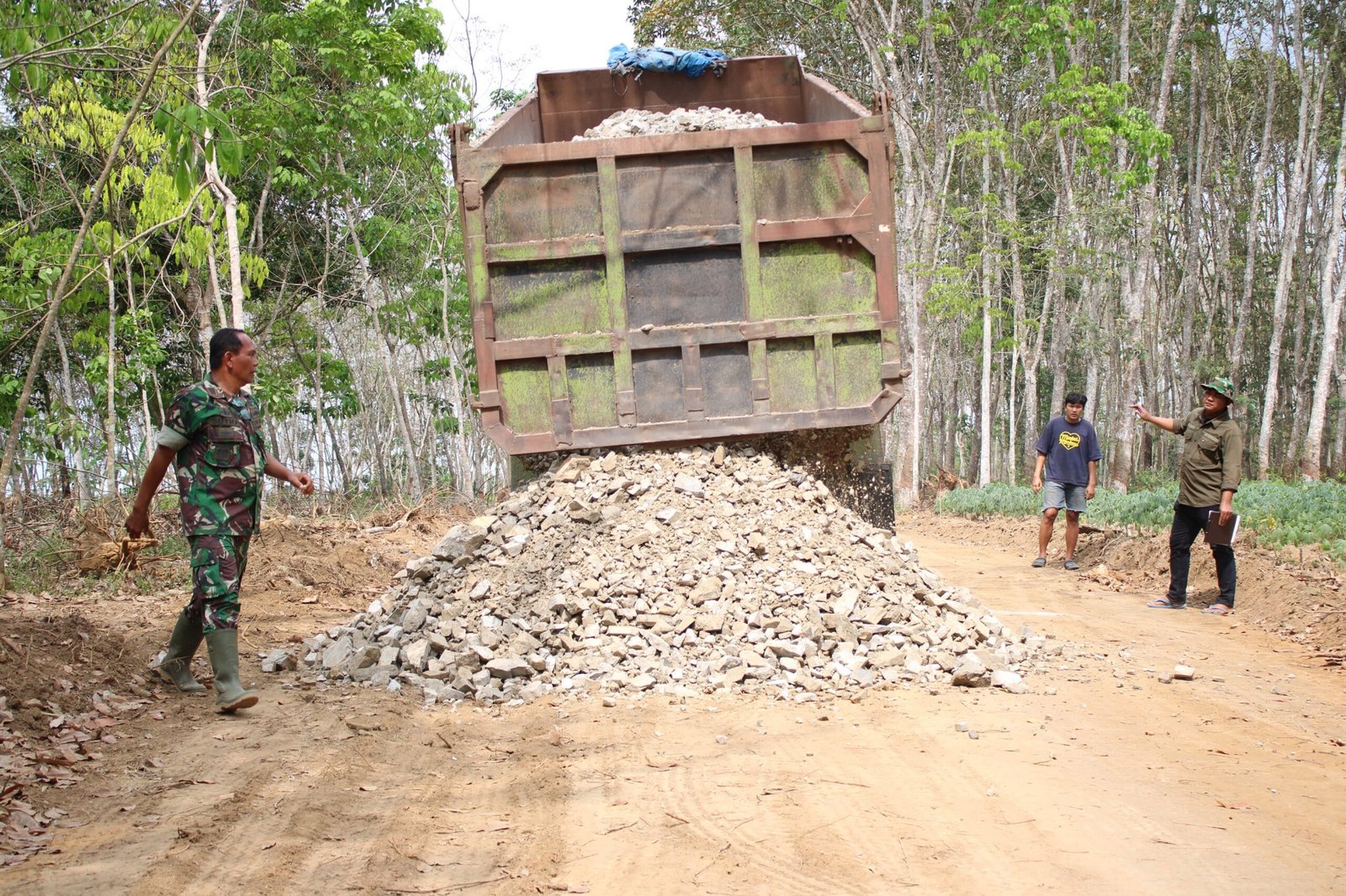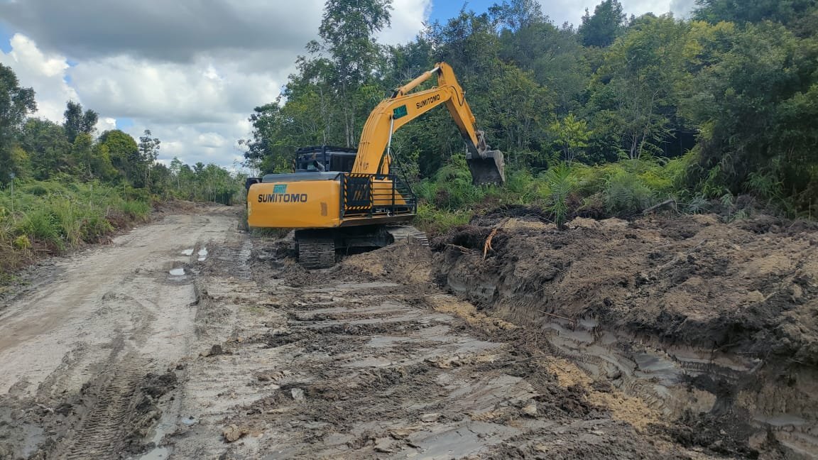 Barito Selatan – Kegiatan fisik TMMD Ke-124 Kodim 1012/Buntok di Desa Wungkur Baru, Kecamatan Gunung Bintang Awai, terus dikebut. Salah satu fokus utama adalah pembangunan jalan desa yang disertai dengan pembuatan saluran drainase di sisi jalan menggunakan excavator.