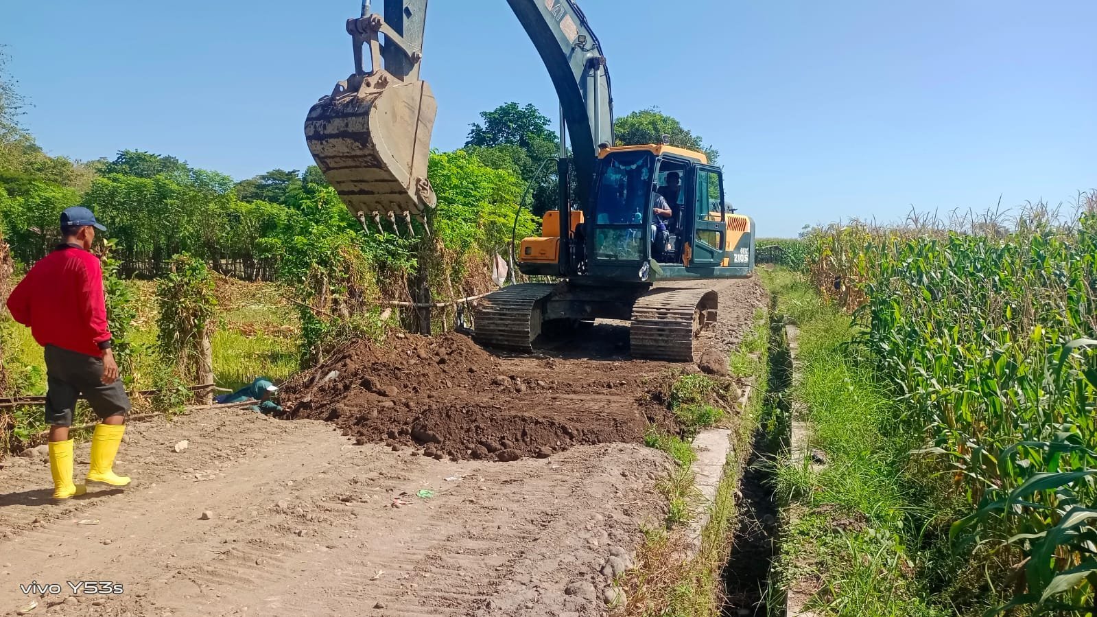Di tengah panasnya cuaca, anggota TNI bersama warga tak mengenal lelah. Sejak pagi, mereka mengerjakan pengecoran jalan dengan semangat gotong royong yang tinggi.