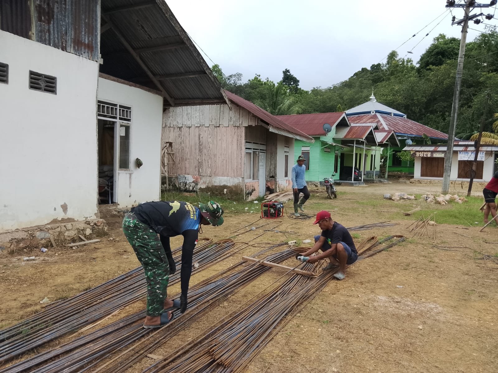 Setelah bekisting dan besi tulangan siap, proses pengecoran pun dimulai. Terlihat Satgas TMMD ke-125 Kodim 0428/Mukomuko secara perlahan menuangkan campuran cor ke dalam cetakan tiang penyangga toren air. Pekerjaan dilakukan hati-hati agar campuran semen masuk merata dan memadat sempurna.