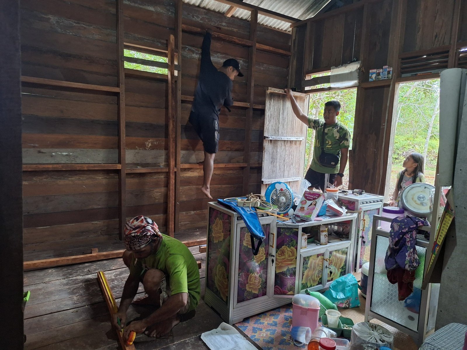 Seorang personel tampak cekatan mengarahkan proses pembengkokan besi tulangan sesuai spesifikasi konstruksi yang telah ditentukan. Dengan memanfaatkan alat manual sederhana di atas meja kerja kayu darurat, ketelitian tetap menjadi prioritas utama.