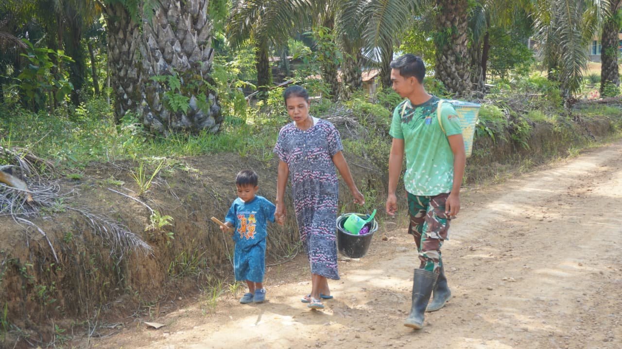 Peristiwa itu terjadi ketika ibu tersebut bersama anaknya melewati lokasi pembangunan RTLH. Melihat kondisi warga, prajurit Satgas secara sigap membantu menggendong tas bawaan ibu tersebut agar perjalanan mereka lebih aman dan nyaman.