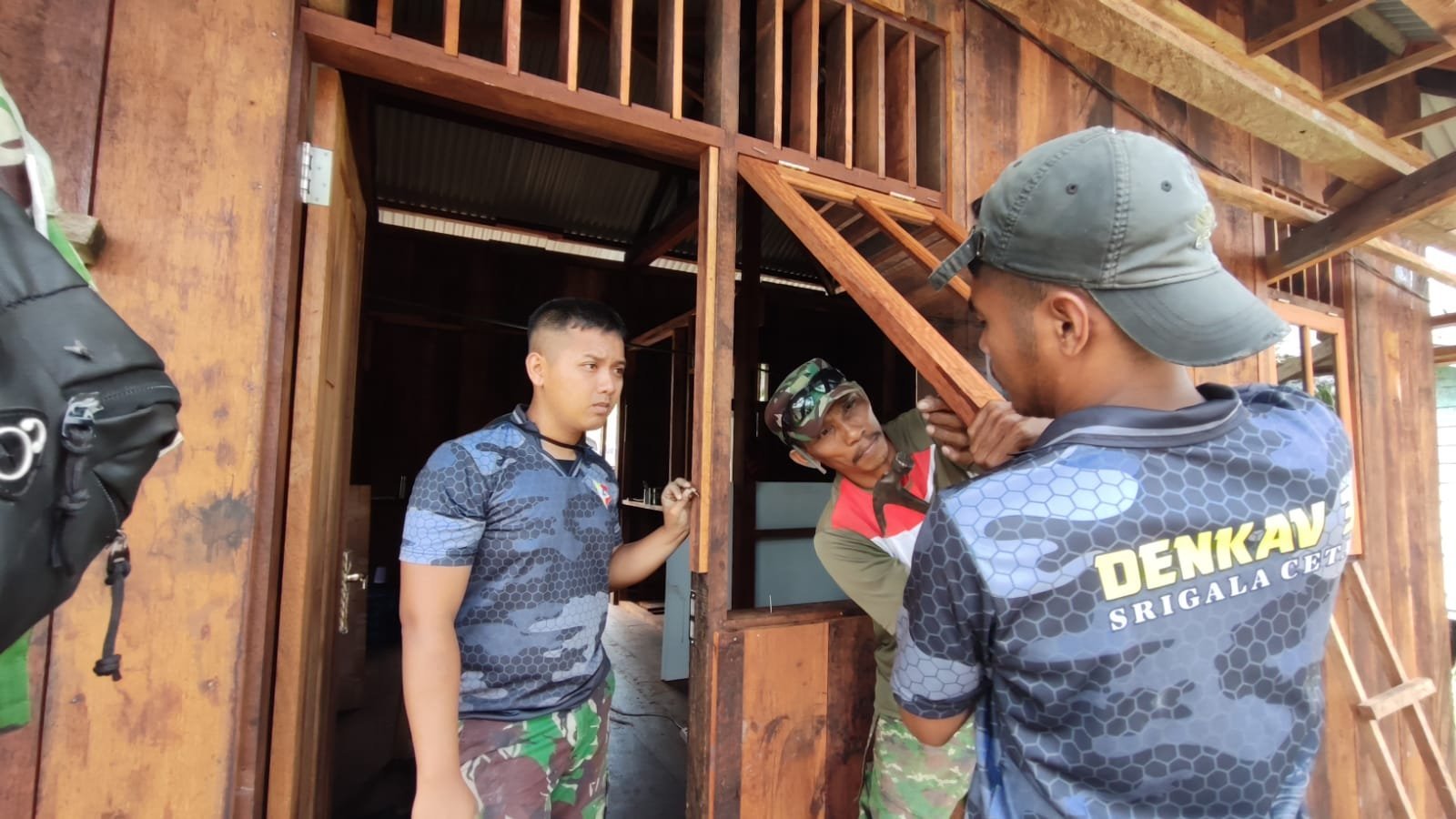 Para anggota Satgas dan warga secara bergotong royong membawa material dari lokasi pengambilan menuju titik pembangunan jalan. Meskipun medan jalan masih terjal dan menanjak, semangat kerja sama tetap tinggi dan tak tergoyahkan.
