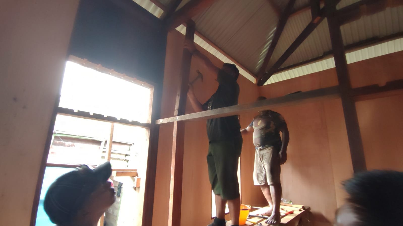 Satgas TMMD ke-124 dan Warga Kompak Pasang Rangka Dinding Kamar