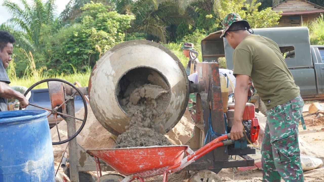 Pengerjaan jembatan ini dilakukan secara gotong royong antara anggota Satgas TMMD dan masyarakat sekitar. Kolaborasi ini memperlihatkan sinergi TNI-Rakyat dalam membangun fasilitas yang sangat dibutuhkan warga.