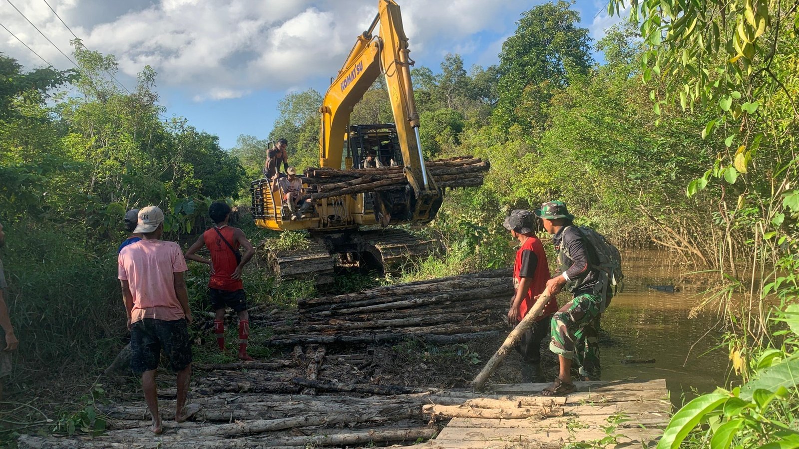 Personel Satgas bekerja sama dengan operator alat berat memastikan setiap tahapan pekerjaan berjalan sesuai standar teknis dan jadwal yang sudah direncanakan. Tantangan cuaca dan kondisi tanah berlumpur tetap dihadapi dengan strategi kerja yang tepat.