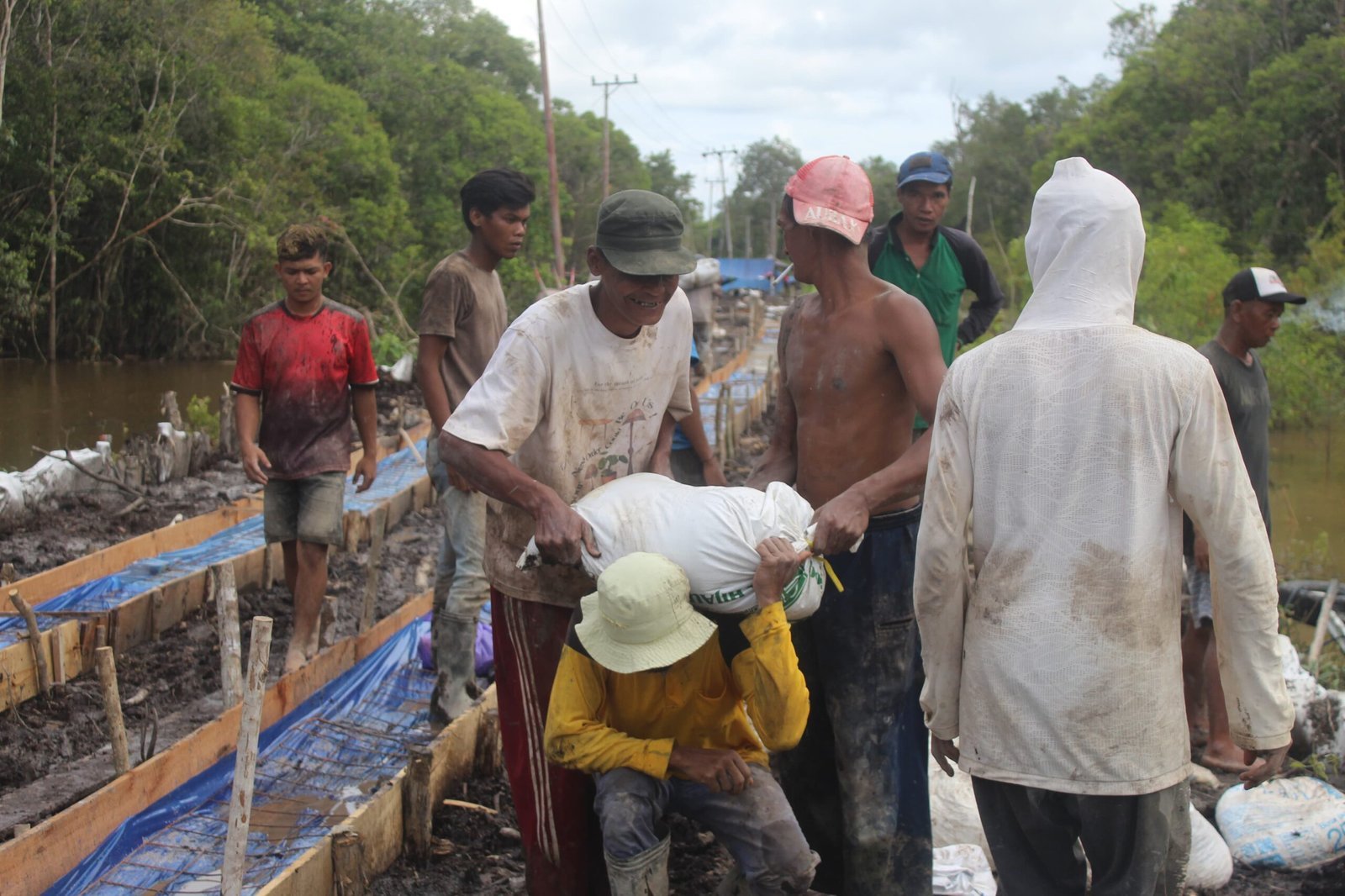 Warga sekitar turut membantu proses pengerjaan, sebagai wujud kebersamaan antara TNI dan masyarakat.