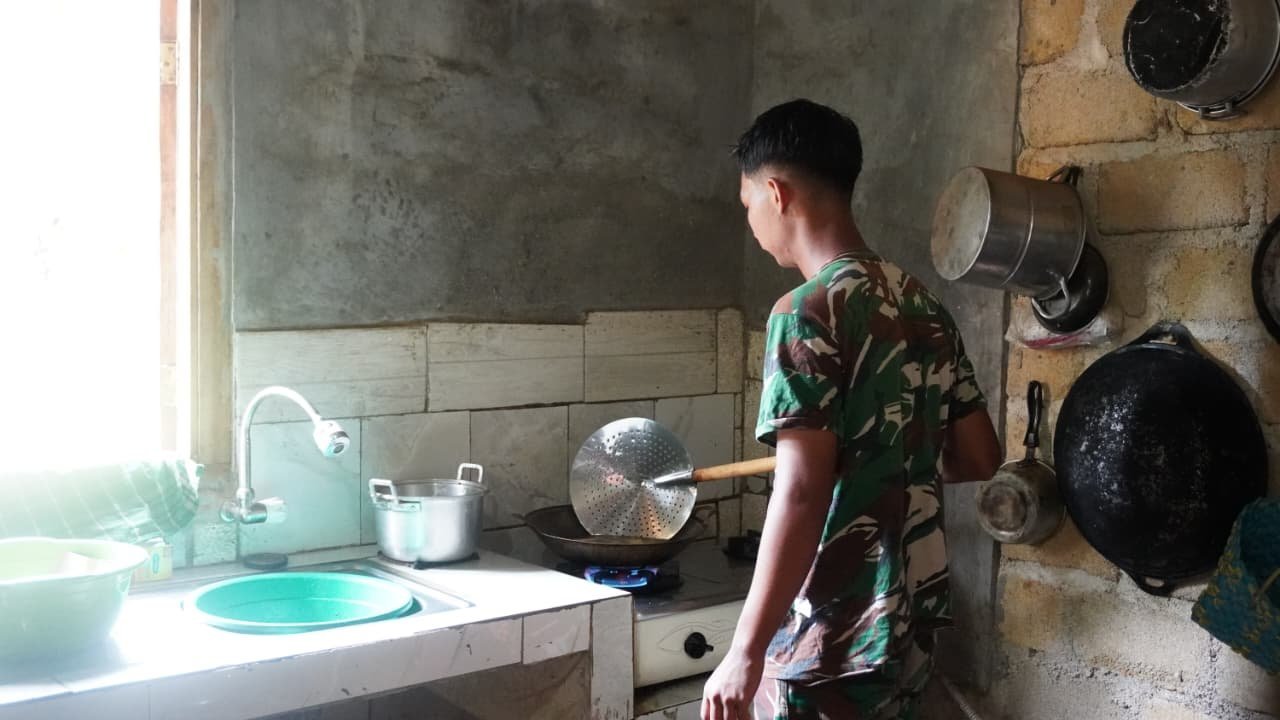 Personel TNI yang tergabung dalam Satgas TMMD terlihat bekerja dengan teliti dan hati-hati, memastikan cat merata di seluruh permukaan tanpa menimbulkan bekas cipratan atau noda. Selain memperindah tampilan, pengecatan ini juga menjadi simbol bahwa fasilitas tersebut segera rampung dan siap digunakan.