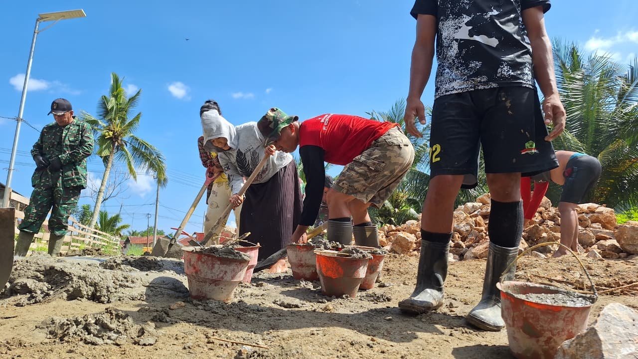 Bantuan tersebut diberikan saat personel Satgas TMMD tengah melaksanakan pembangunan siring jalan di wilayah desa tersebut. Salah satu anggota Satgas, Pratu Dedi, dengan sigap menghentikan pekerjaannya untuk membantu warga yang sedang kesulitan mendirikan tiang rumah.