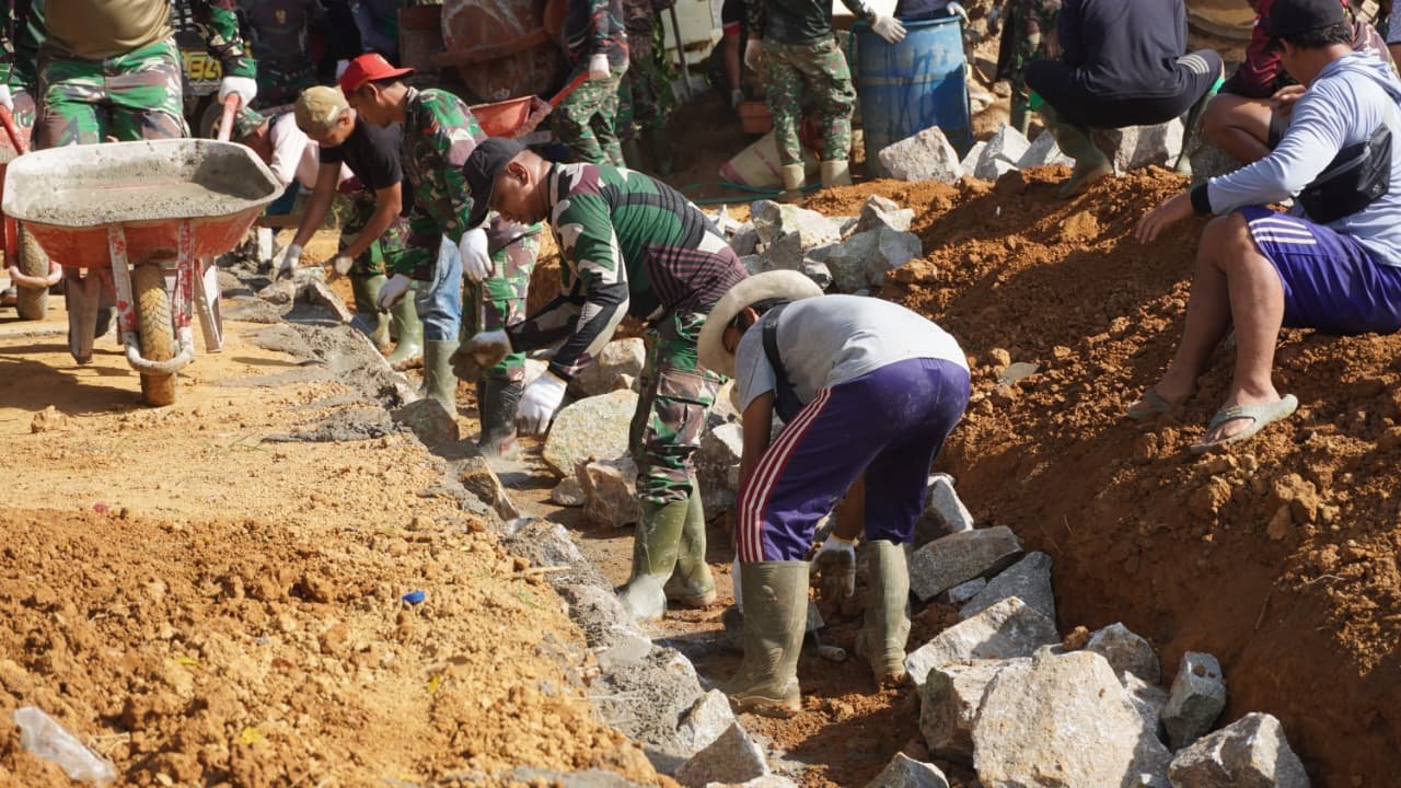 Pekerjaan tersebut menjadi salah satu sasaran fisik utama dalam program TMMD yang bertujuan meningkatkan kualitas infrastruktur desa. Anggota Satgas dan warga bekerja ekstra agar pemasangan batu siring dapat diselesaikan sesuai target yang telah ditentukan.