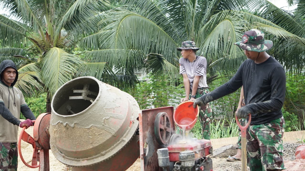 Keberadaan prajurit yang menguasai pengoperasian peralatan konstruksi menjadi faktor pendukung utama kelancaran pengerjaan sasaran fisik TMMD, khususnya dalam menjaga konsistensi kualitas material bangunan.